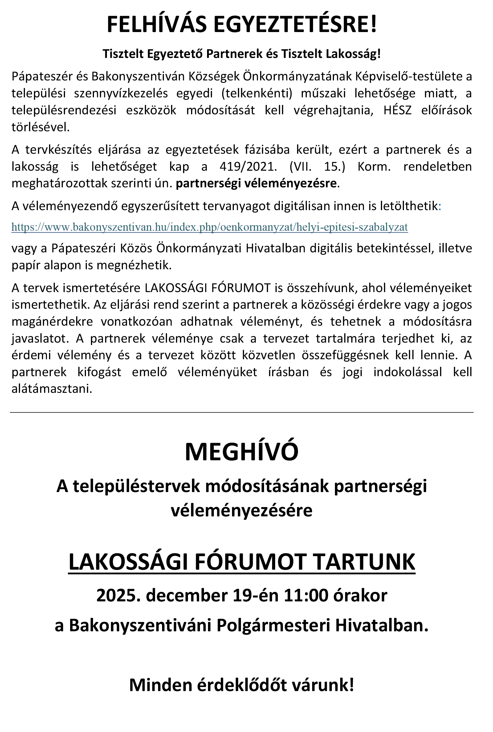 Partnerségi hirdetmény és lakossági fórum meghívó